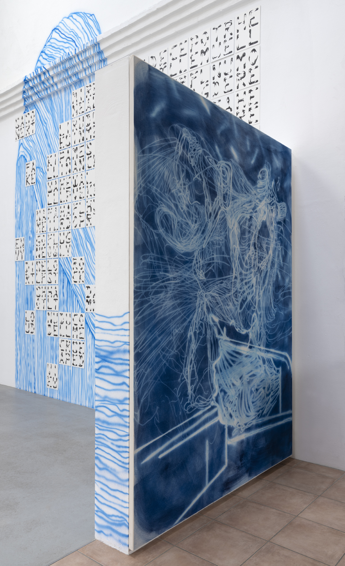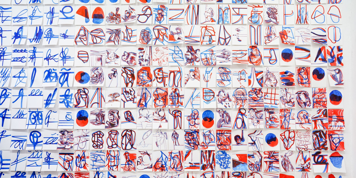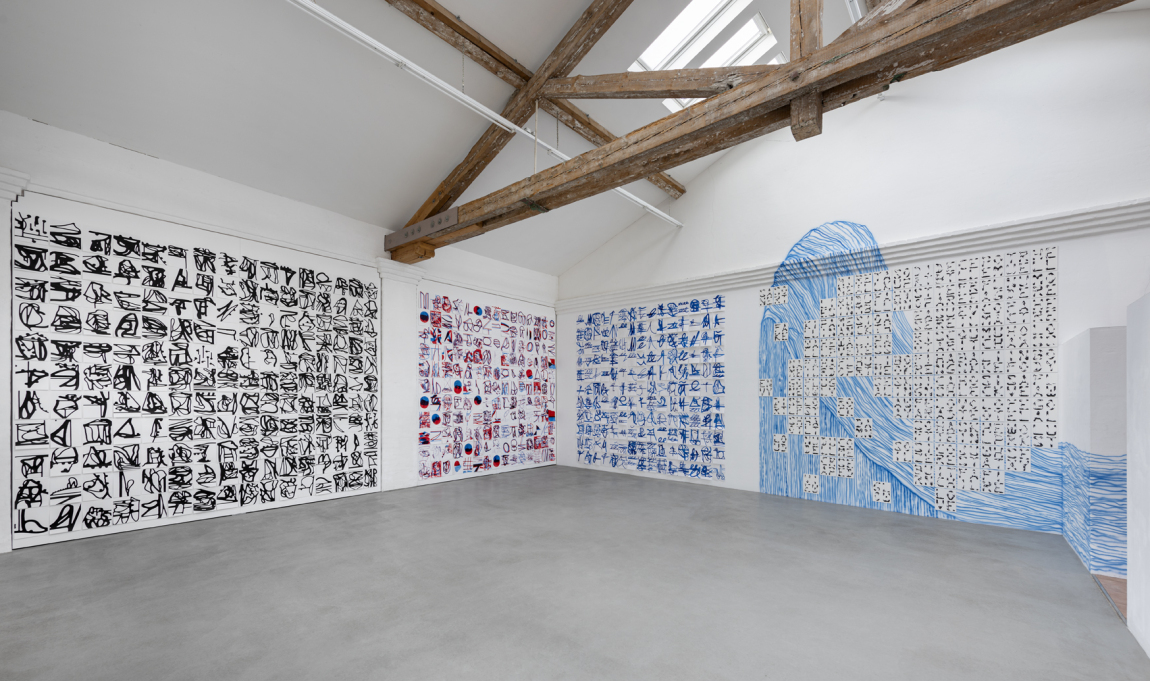 Mit graphischen Strukturen, Kürzeln und Notaten entstehen umfassende Bildsysteme und raumgreifende All-over-Strukturen, die das KunstHaus temporär verwandeln werden. Linien, Kürzel und Codes sind geradezu haptisch und mit eindringlicher Präsenz zu erfahren.