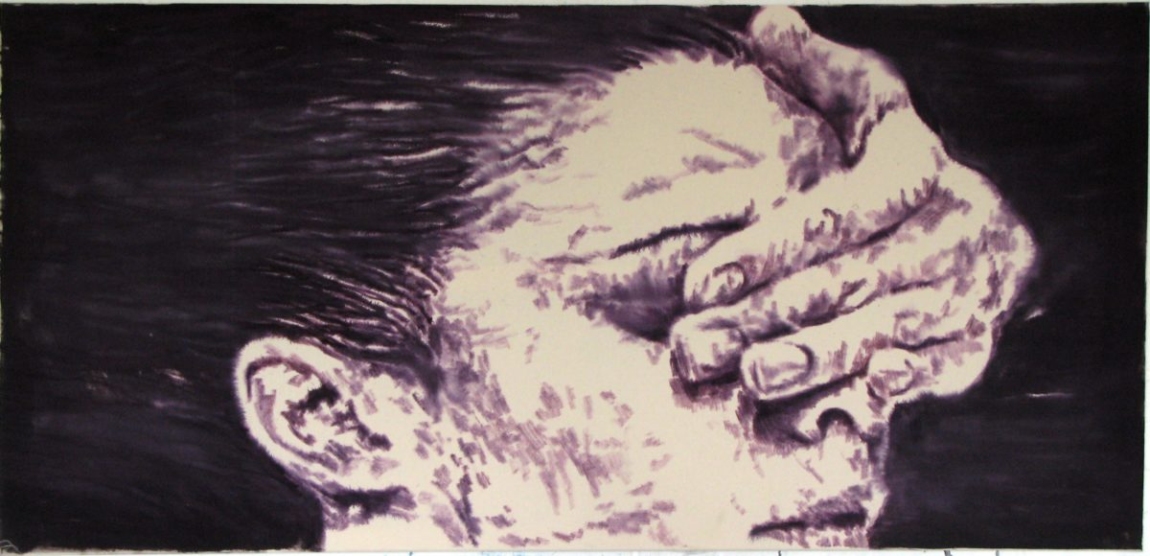 Dieter Mammel, Blind Date, 2008, Aquarell, Tusche auf Leinwand, 90 × 190 cm