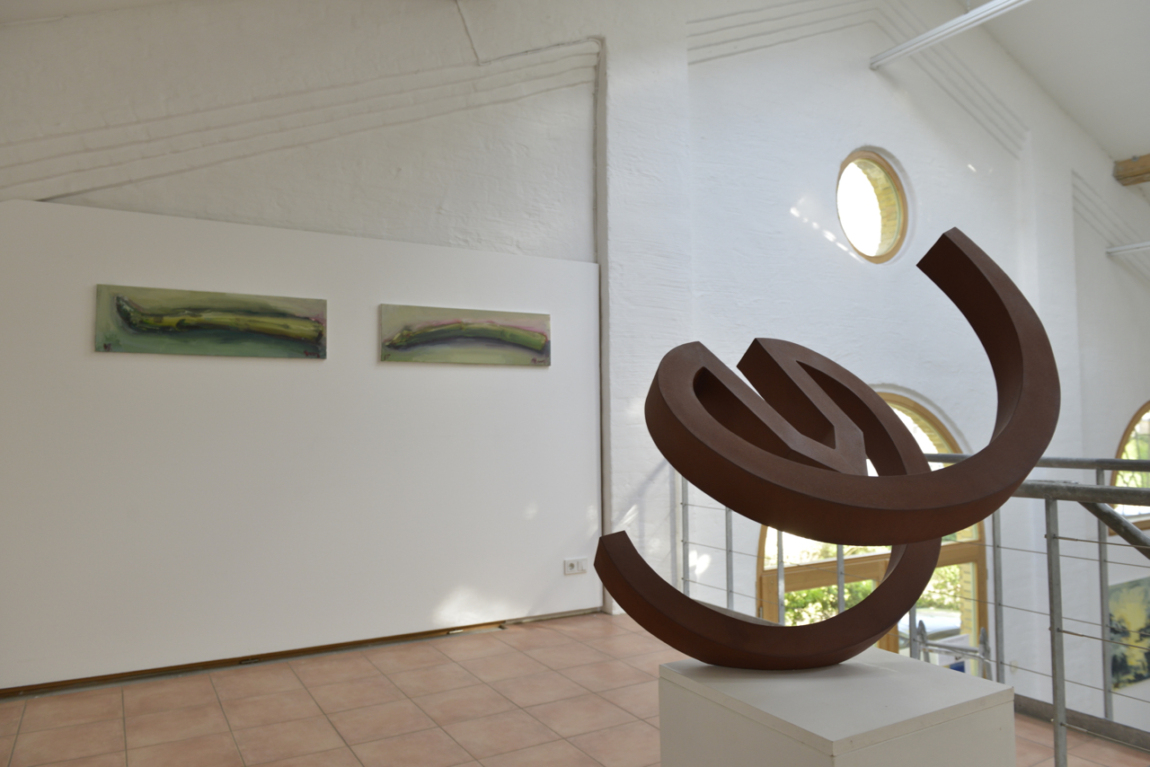 Gemeinsames Thema der Präsentation im KunstHaus Potsdam ist nichts weniger als der Raum: ein so reales wie gedankliches Konstrukt, das alle Seherfahrungen verbindet und im Blick auf das einzelne Werk sowie im Miteinander weite Denkhorizonte eröffnet. Dabei zeigt sich spontan Vertrautes in den auf das Wesentliche konzentrierten, entschieden einfach wie archaisch anmutenden Skulpturen aus Holz, Cortenstahl und Bronze von Werner Pokorny. Die Bilder des Künstlerpaares Gabi Streile und Werner Schmidt hingegen transportieren Energie und geheimnisvolle Stille, Intellekt und Sinnlichkeit und vor allem eine unbändige Lust am Malen.