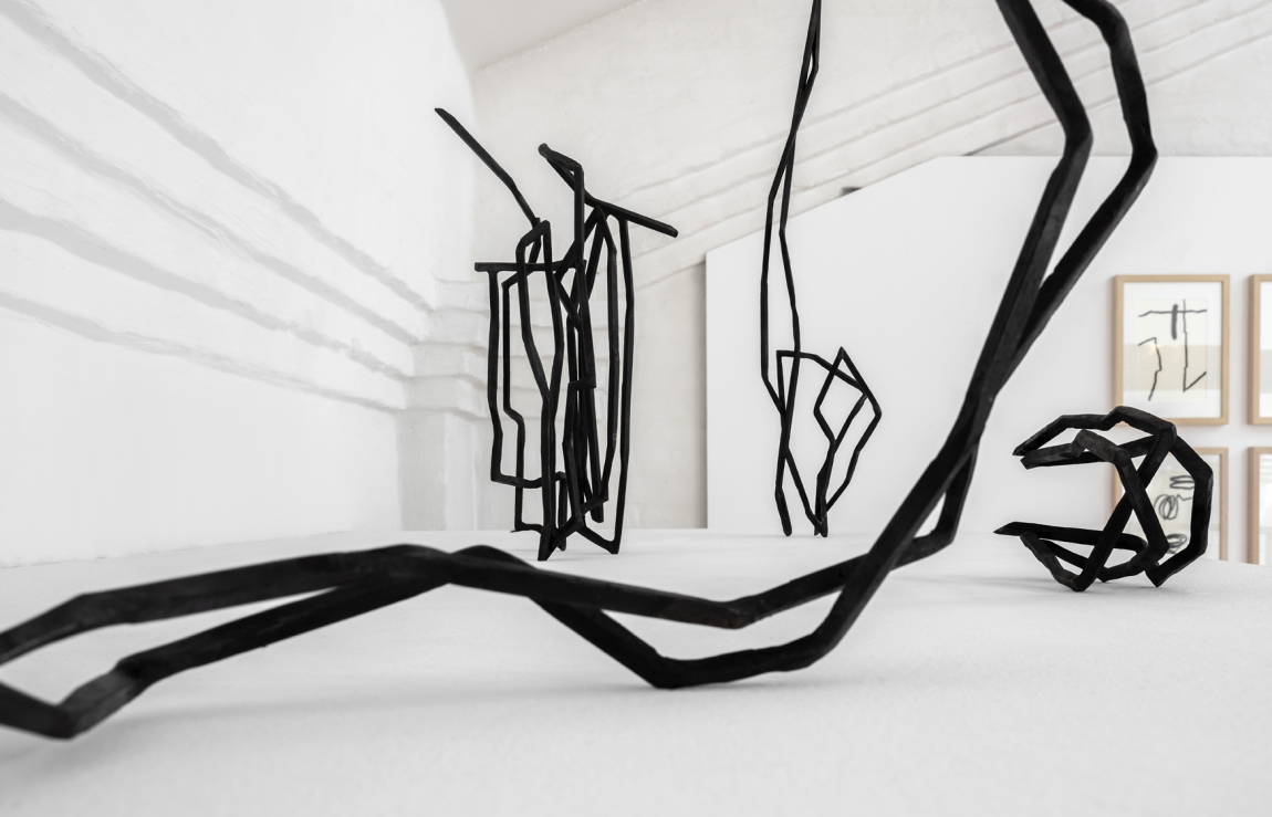 Im Raum – sei dies ein Innen- oder Außenraum, ein öffentlicher oder privater Raum – gehen die linearen Skulpturen ganz unterschiedliche neue Beziehungen ein: Sie bilden räumliche Formen ab oder unterbrechen sie; erscheinen starr, meist aber bilden sie Bewegungsimpulse aus. Im Zentrum aller Überlegungen steht stets das Verhältnis der Skulptur zu ihrem Umraum, der Figur zu ihrem Grund. So bildet auch hier das Jahresthema 2022 im KunstHaus Potsdam, FIGUR — GRUND, den thematischen Rahmen der Ausstellung.
