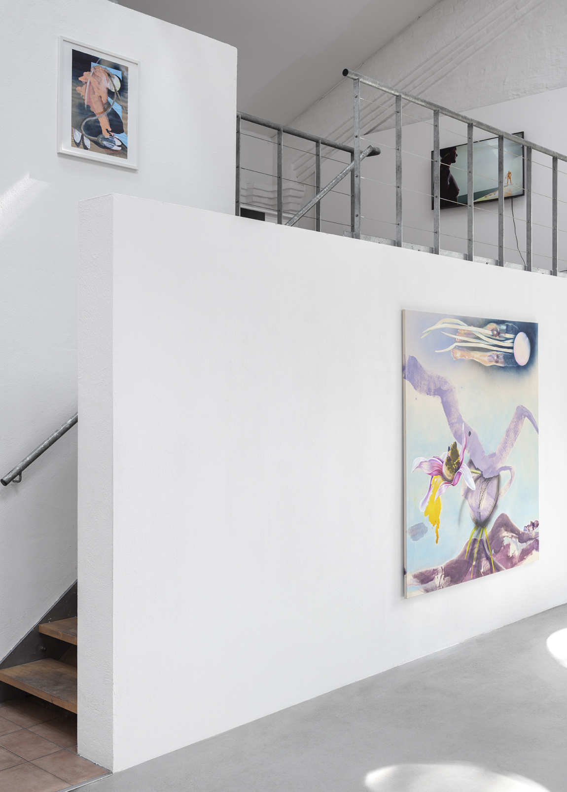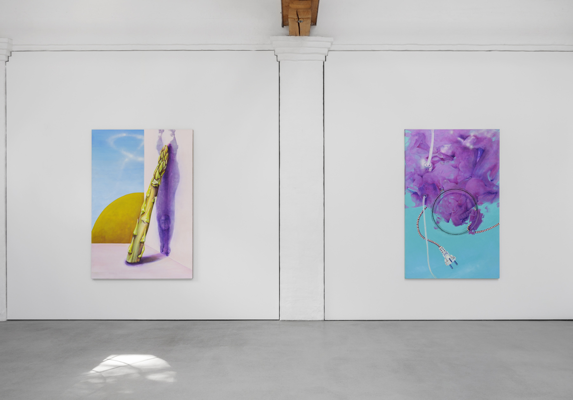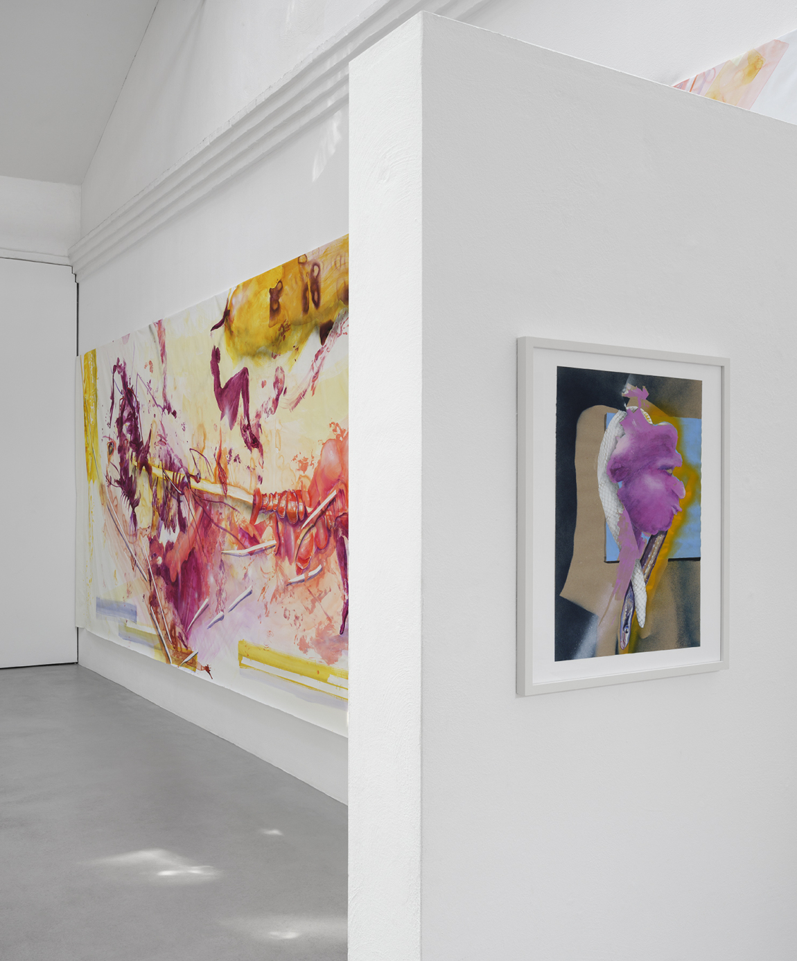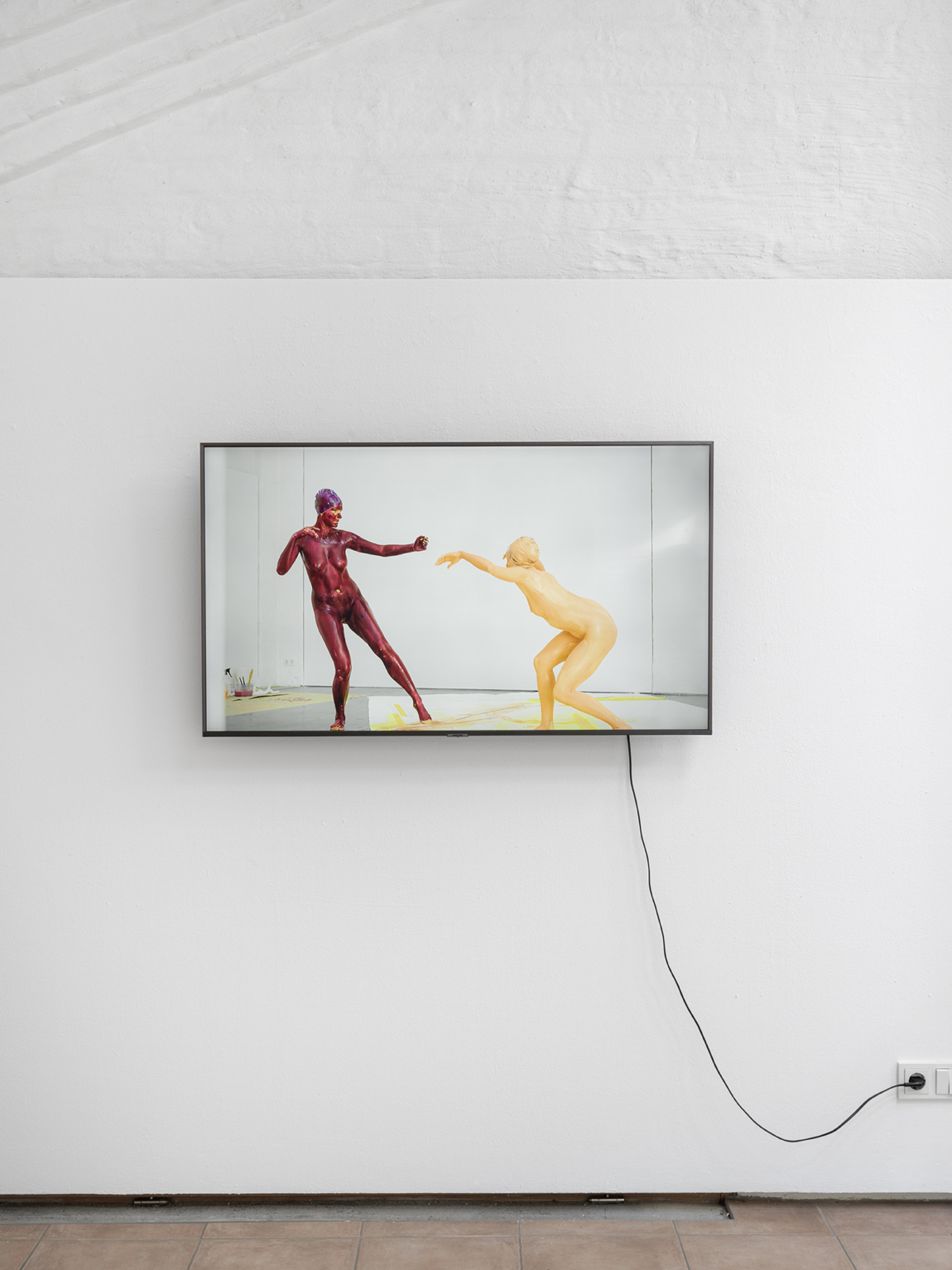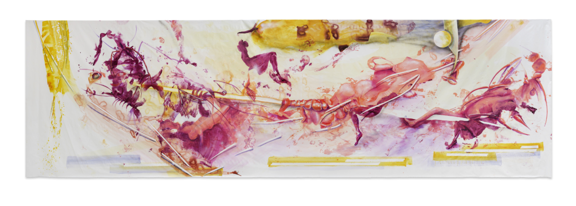 Für die Ausstellung “Hybrid Moves” geht die Bonner Künstlerin Stephanie Pech eine für sie neue Symbiose ein: Tanz und Malerei finden hier zusammen. In Kooperation mit zwei Tänzerinnen wird das Kunsthaus bereits vor der Ausstellungseröffnung von einem Ort des Kunstzeigens zu einem Ort des Kunstschaffens: In einer Performance hinterlassen die mit Farbe bedeckten Körper der Tänzerinnen Spuren auf einer am Boden liegenden, vier mal neun Meter großen Leinwand. Stephanie Pech ergänzt diese Körperabdrücke im Nachhinein durch ihre Malerei, nutzt sie so, dass sie teils zu neuen Entitäten, Pflanzen oder anderen Lebewesen werden, teils als abstrakte Flächen das Bild strukturieren. In der Ausstellung wird die große Leinwand zur ortsspezifischen Wandarbeit und damit zum temporären Mittelpunkt des Kunsthauses. Sie ist der Ausgangspunkt für weitere Malereien Pechs, die zusammen ihren thematischen Bildkosmos bilden. Außerdem wird ein Video der tänzerischen Performance und damit ein Teil der Genese der Wandarbeit zu sehen sein.