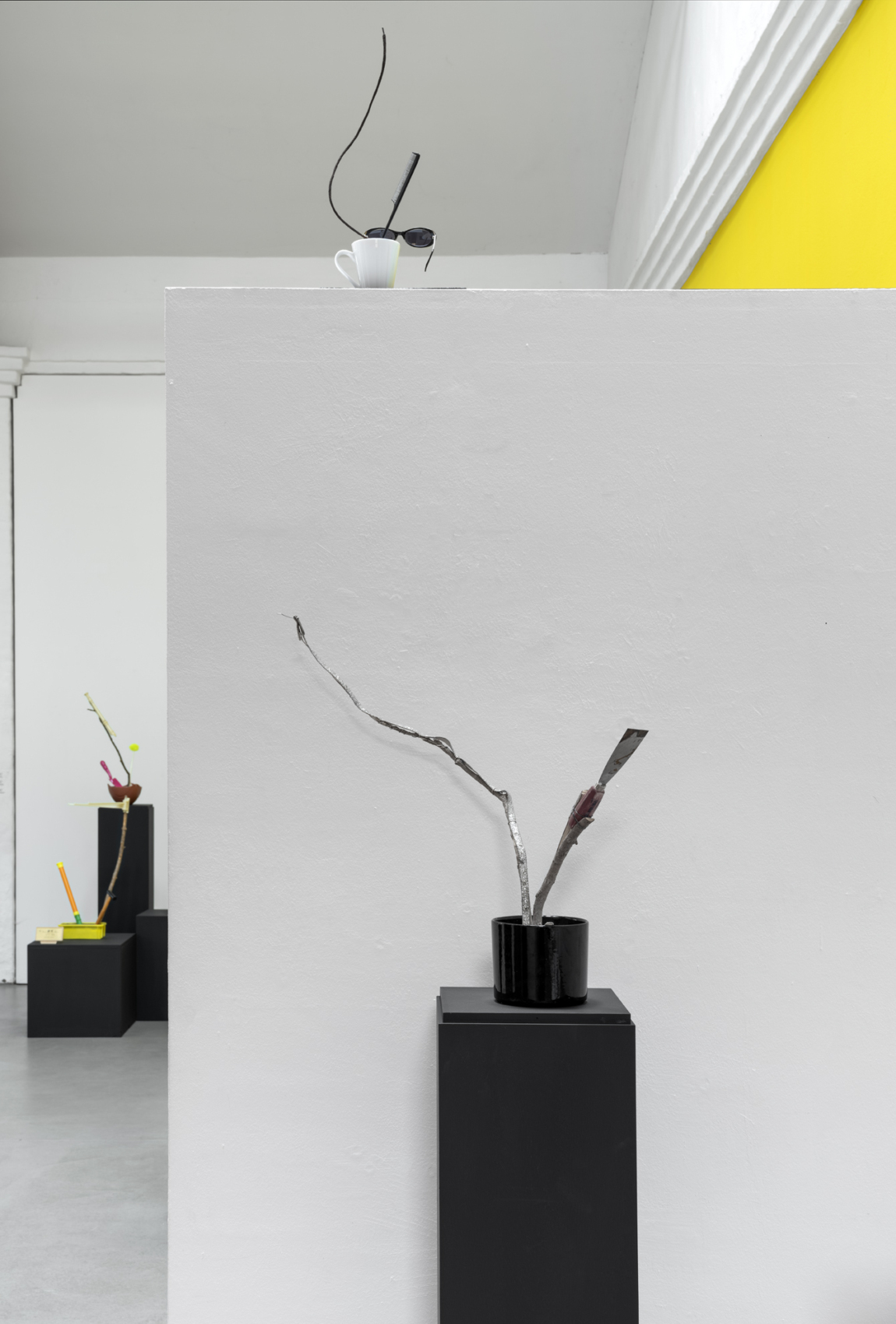 Für die besondere Architektur im KunstHaus Potsdam entwickelte die Künstlerin ein Gedanken- und Raumkonzept, das die konstruktiven und dekorativen Elemente der Architektur sowie die Proportionslehre der japanischen Blumensteckkunst Ikebana gleichermaßen aufnimmt. Mit den drei Grundfarben an drei Wänden fokussiert sie in den Räumen die konstruktivistischen Elemente und verwandelt den Ausstellungsraum in einen, wie sie es nennt, „Konsum Erkenntnis Raum“.