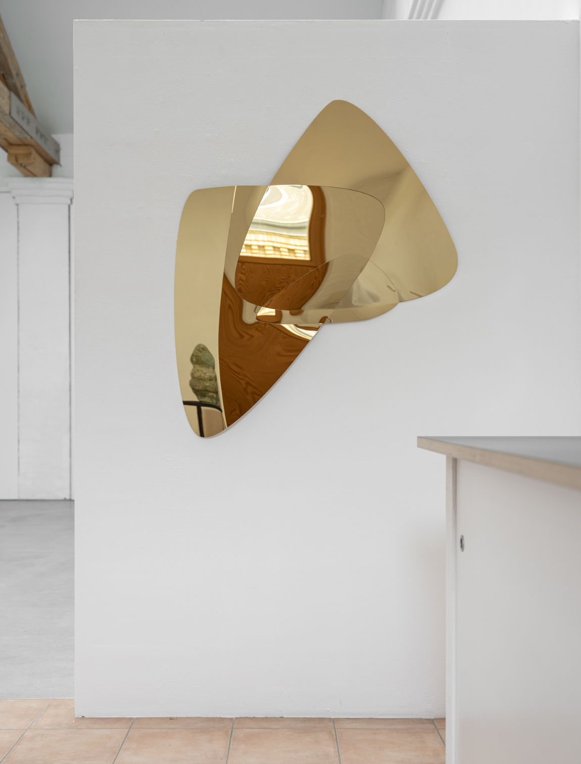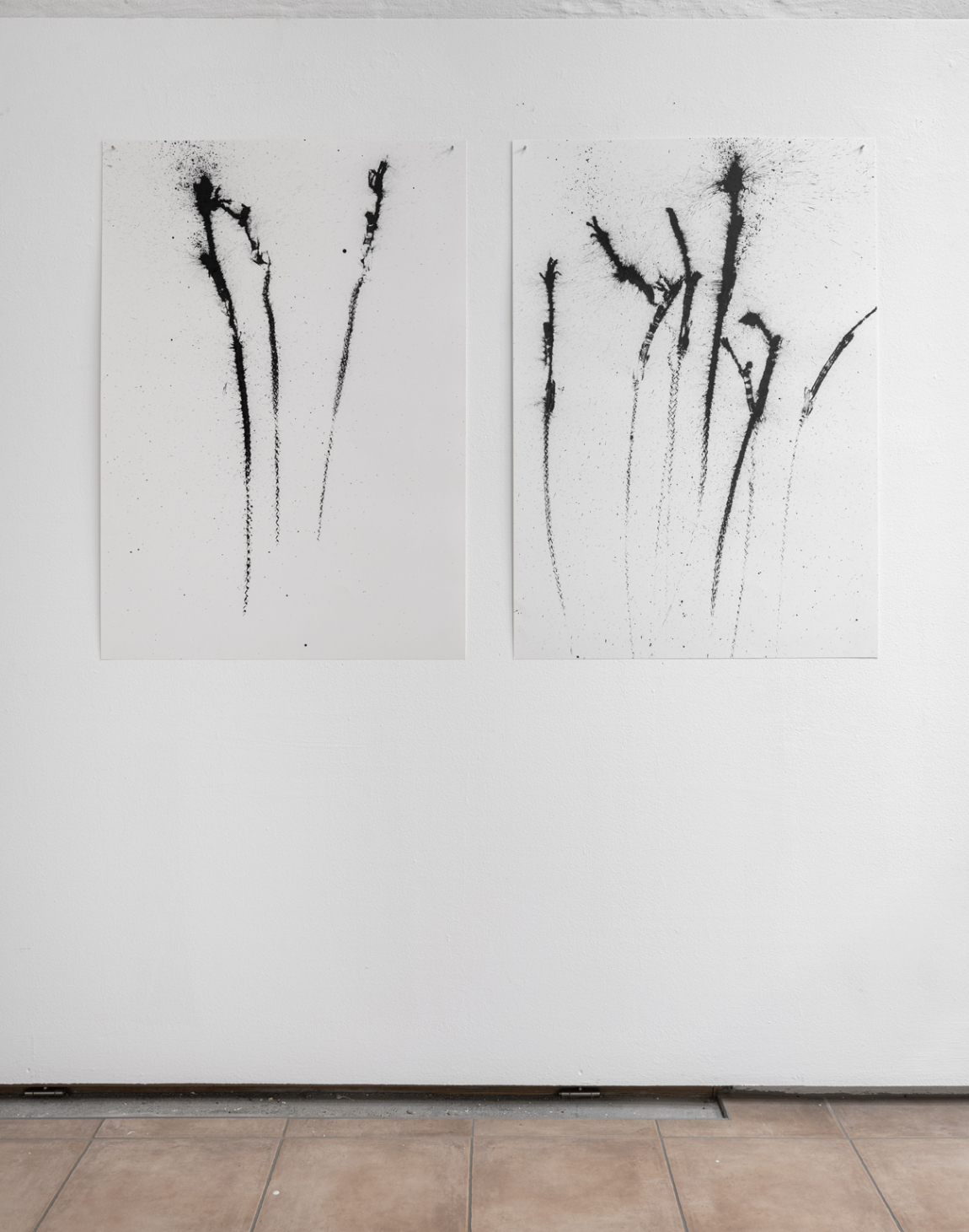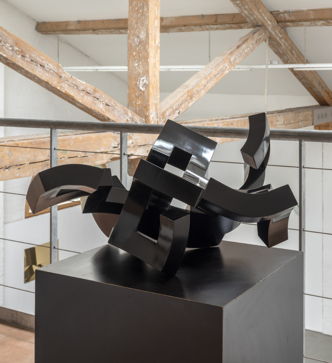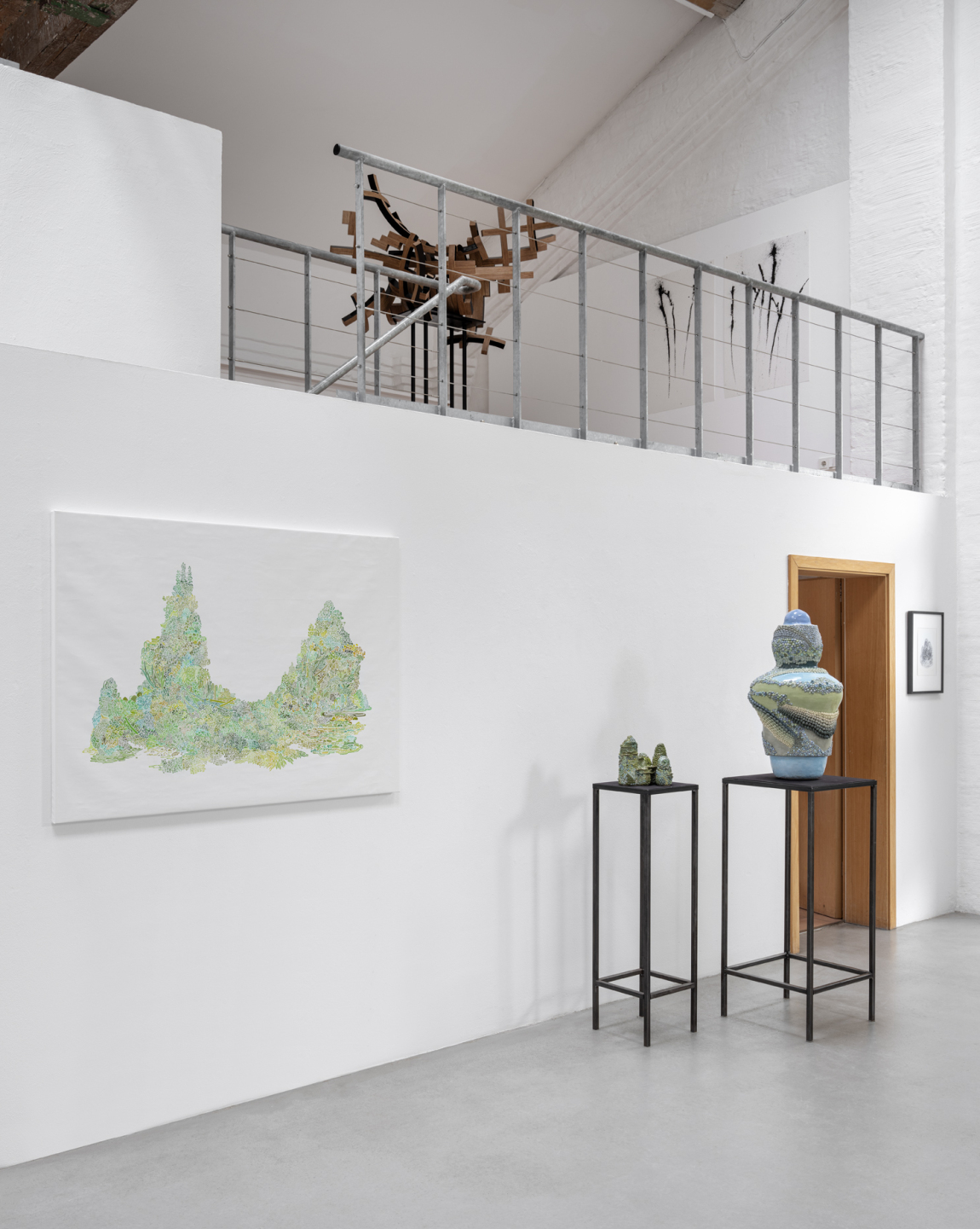 Zeichnungen. Hierzu wirken die feingliedrigen, vertikal strukturierten skulpturalen Werke von Kavata Mbiti aus kantigen Holzstäben im Zusammenspiel mit ihren großformatigen, so poetischen wie expressiven Papierarbeiten, wie ein richtungsweisender Kontrast. Die Einschnitte, Faltungen und Biegungen von Jan Großmann erkunden in freien Formationen und klaren Farbkontrasten den Raum, während die Skulpturen und Reliefarbeiten von Axel Anklam mit ihren diffizilen Oberflächenreizen, transparent oder spiegelnd, den Raum mit scheinbar schwereloser Leichtigkeit aufnehmen und das Licht als wandlungsfähigen Komplizen einbinden.