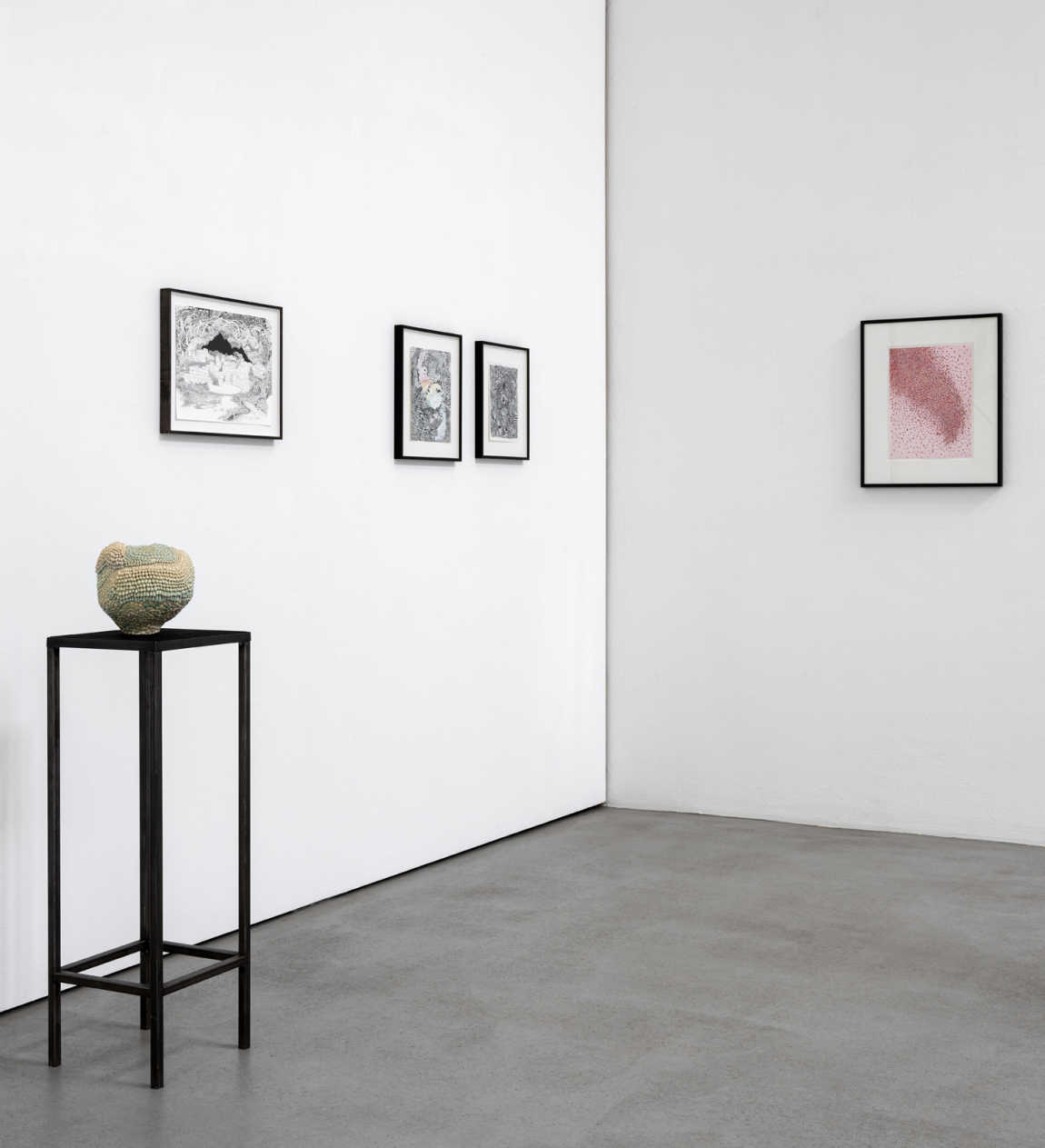 Die Vielfalt an Oberflächenreizen, Materialien und Strukturen lässt an eine Wunderkammer denken. Detailreich, filigran, mit feinsten Farbverläufen oder klaren Tönen, spiegelndem Glanz oder sanftem Schimmer ziehen die im KunstHaus versammelten Skulpturen und Zeichnungen von Axel Anklam, Angelika Arendt, Jan Großmann und Kavata Mbiti alle Blicke auf sich und senden subtile Bewegungsimpulse in den Raum. Ob aus modernen oder traditionellen Werkstoffen geschaffen – das Spektrum reicht von Glasfaserkunststoff, Edelstahl, Aludibond bis zu Keramik, Holz, Wachs, Papier und Leinwand – alle Arbeiten überraschen mit großer Sinnlichkeit. Die vier Künstlerinnen und Künstler verbindet die Faszination für den Reichtum an Formen in der Natur, die darin erfahrbaren Ordnungen, wiederkehrenden Prozesse und Metamorphosen.