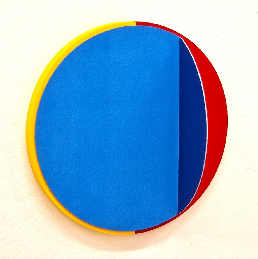 2023, mdf, aluminium, acrylfarben, kleber, Ø 33 cm, tiefe 9,8 cm